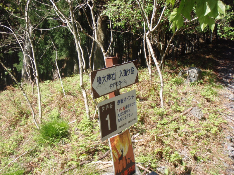 | 井戸谷通報ポイント@ 移動距離 0m 所要時間 0分 GPS高度 317m 緯度 34;58:07.3 経度 136;26:41.7 駐車場より舗装路 沢を渡ると右手に登山道口 |