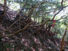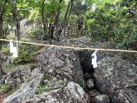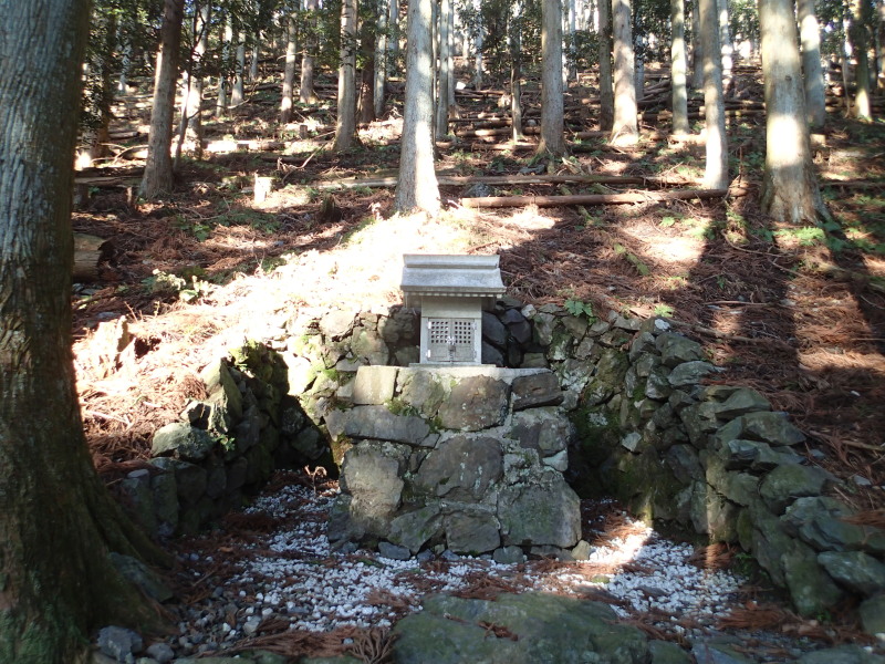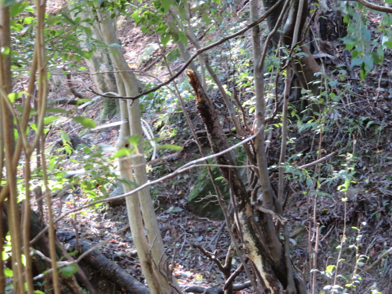いしぐらの鎮座への分岐 移動距離 所要時間 GPS高度 736m 緯度 34;58:27.7 経度 136;26:20.2 2018年11月17現在 通行困難 |
