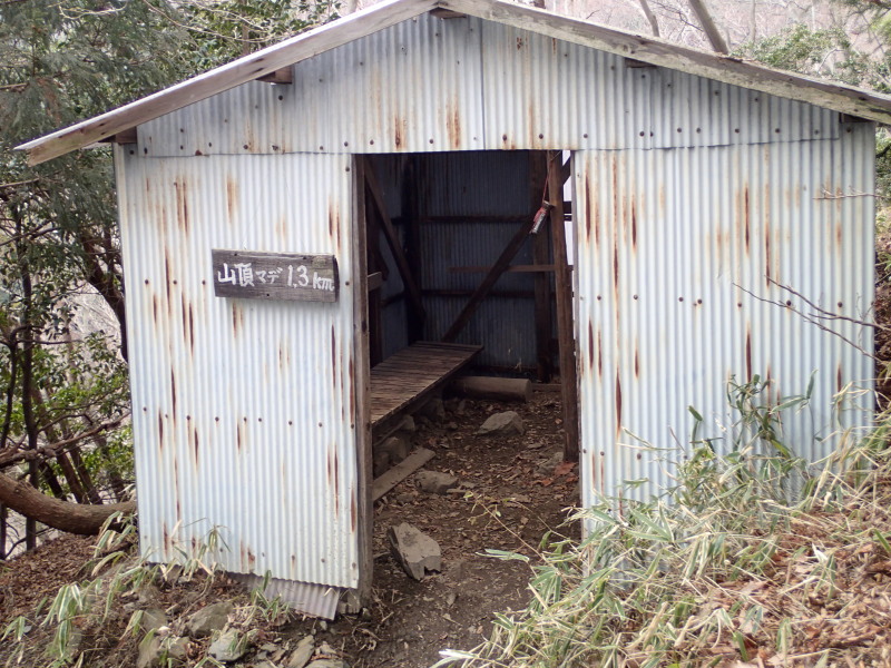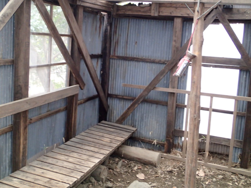 | 北尾根避難小屋 移動距離 1970m 所要時間 65分 GPS高度 525m 緯度 34;58:24.3 経度 136;26:35.0 建物の中 |