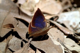 テングチョウ 和名:テングチョウ(天狗蝶) 学名:Libythea celtis 分類:タテハチョウ科>テングチョウ亜科 撮影:2015/03/21 井戸谷にて 横は茶色で枯葉のように見える 成虫の前翅長は20-30mm てんぐのように顔の先が尖っている |
