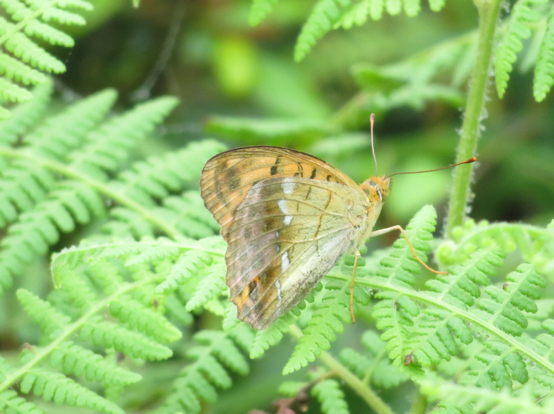 ミドリヒョウモン 和名:ミドリヒョウモン 学名:Argynnis paphia 分類:タテハチョウ科>ドクチョウ亜科 撮影: 山頂にて 大きさ (前翅長)31-40mm |