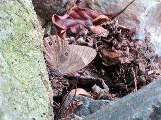 クロヒカゲ♀ 和名:クロヒカゲ(黒日陰 学名:Lethe diana 分類:タテハチョウ科>ジャノメチョウ亜科 |