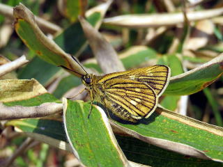 キマダラモドキ 和名:黄斑擬・擬黄斑 学名:Kirinia fentoni 分類:チョウ目>タテハチョウ科>ジャノメチョウ亜科 撮影: 準絶滅危惧種 |