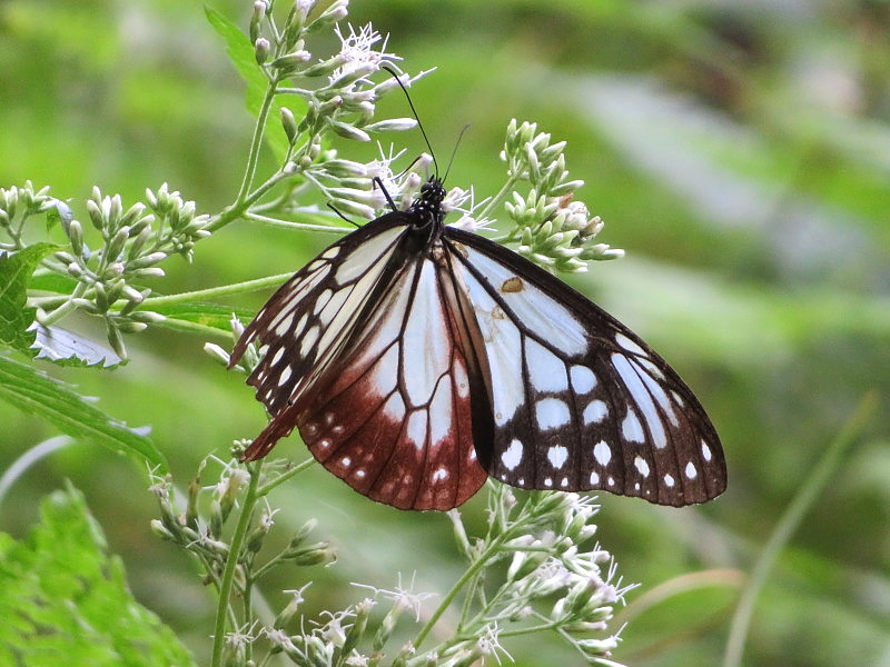 アサギマダラ 和名:アサギマダラ 学名:Parantica sita niphonica 分類:タテハチョウ科>マダラチョウ亜科 撮影:2016/05/14 井戸谷にて 前翅長は5 - 6cm ふわふわと飛翔し、また、人をあまり恐れずよく目にする |