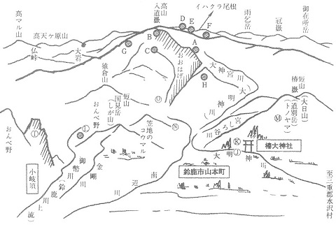 N,いわくら遥拝所 井戸谷コース入り川の手前を登るとすぐ |