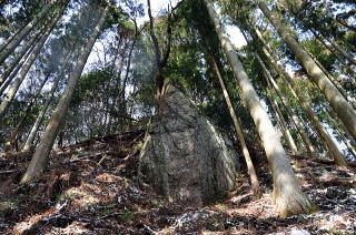 H,いしがみのいわくら 縦五メートル黒光りする自然石 井戸谷ルート 通報ポイントB付近 |
